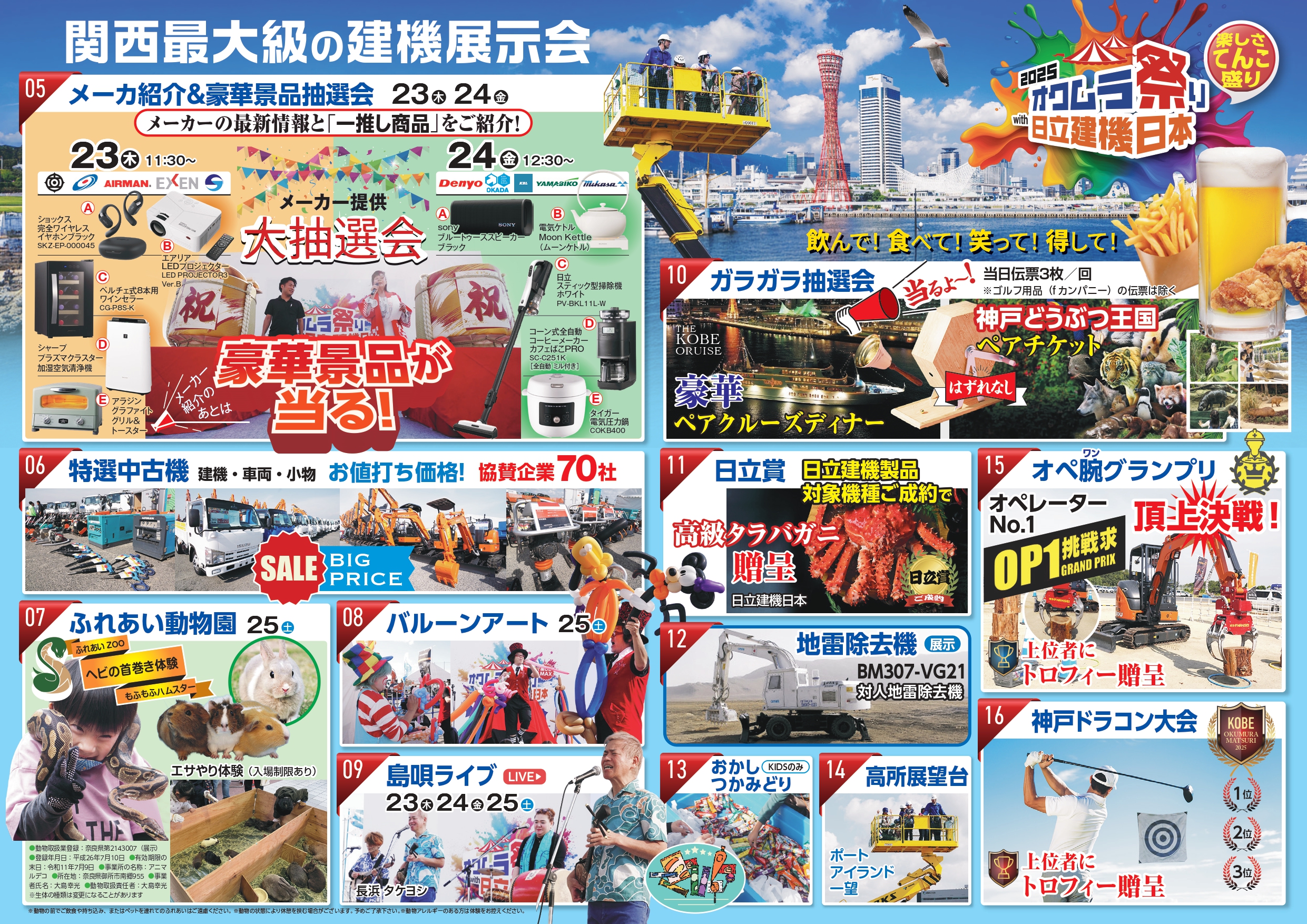 2025年10月23日(木)、24日(金)、10月25日(土)の3日間にわたり神戸ポートアイランドにて奥村機械株式会社・日立建機日本株式会社の共同開催による関西最大級の建機展示会「2025オクムラ祭りwith日立建機日本」を開催致します。